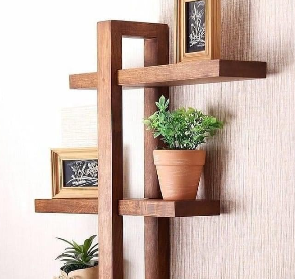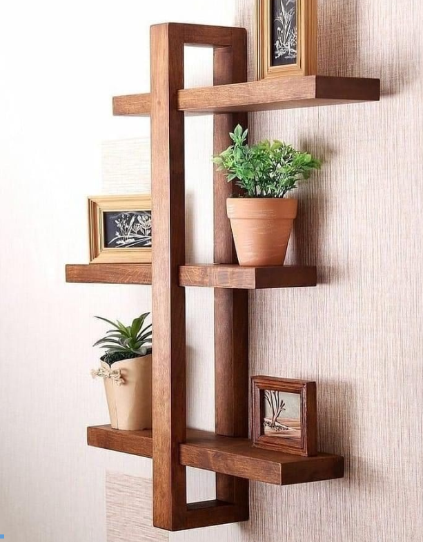 Wooden Wall Mounted Display Shelf, 3-Tier Floating Shelves, Modern Cross Design, Brown | Dhan Decor by JKS